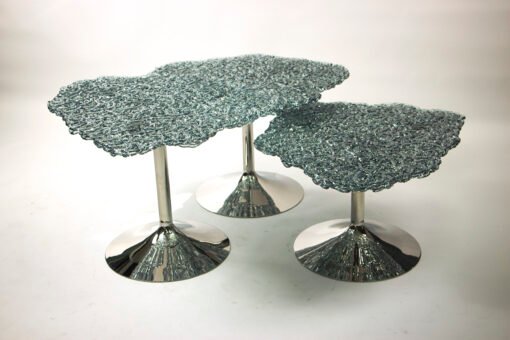 Discover the ultimate combination of style and durability with our expertly crafted table. This piece is a true masterpiece, designed for modern interiors while standing up to everyday use. The table top is made from handwoven UV-resistant polycarbonate, ensuring it maintains its striking appearance season after season. Each table is uniquely crafted—no two are exactly alike, making it as exclusive as it is functional.