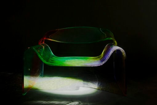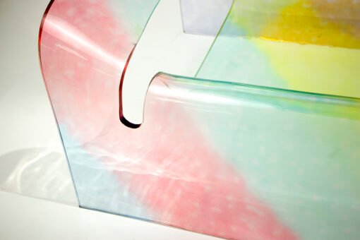 Single-piece forming of 20mm thick rainbow acrylic sheet through heat bending