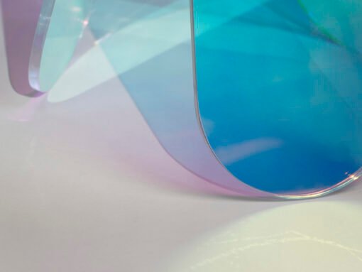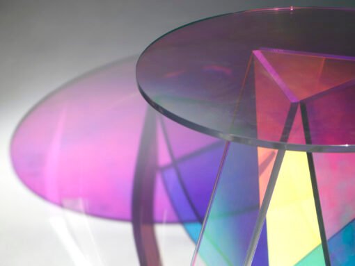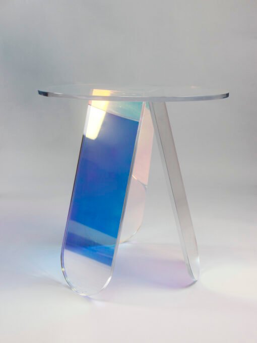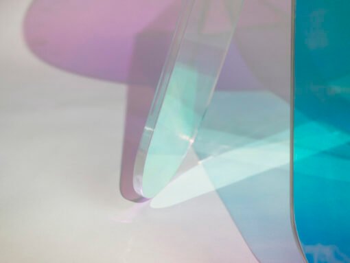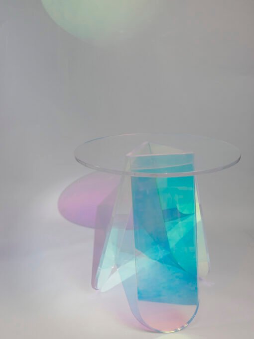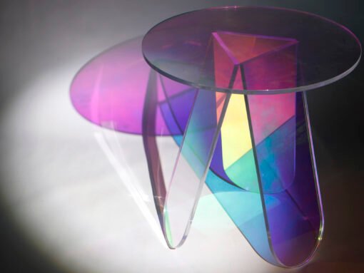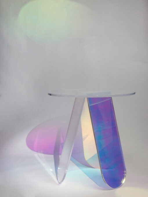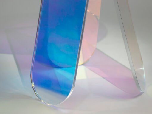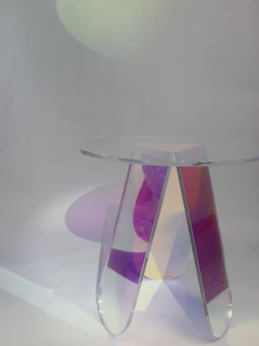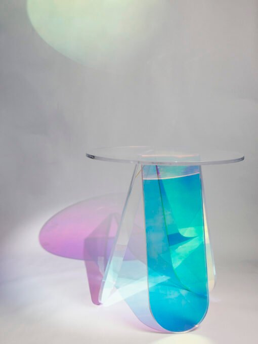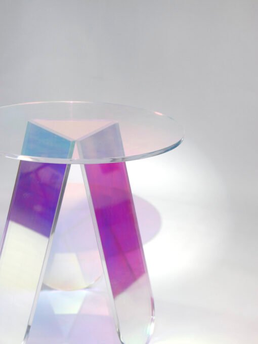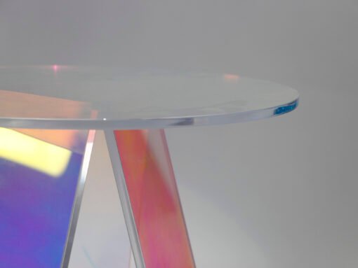 Crafted from 10mm iridescent acrylic sheets that create a captivating rainbow effect